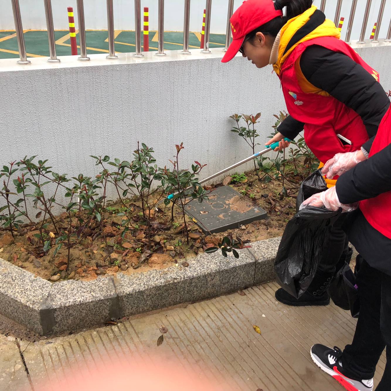 活动将校园分区划片,各支部认领了各自区域。尽管天气寒冷,风雨交加,可党员教师们热情高涨,没有退缩,带上手套、拿起夹持器、拎上垃圾袋,沿着校园既定路线对教学主楼、学生公寓、绿化带、实训楼前后等场所进行清理打扫。他们在绿化带中低头弯腰,仔细搜索白色垃圾和烟头,有些老师甚至直接用手捡出口香糖、塑料纸壳、烟蒂等垃圾,并装入垃圾袋中,确保不放过任何一个卫生死角。经过大家的努力,校园卫生环境得到了进一步的改善,整个面貌焕然一新。