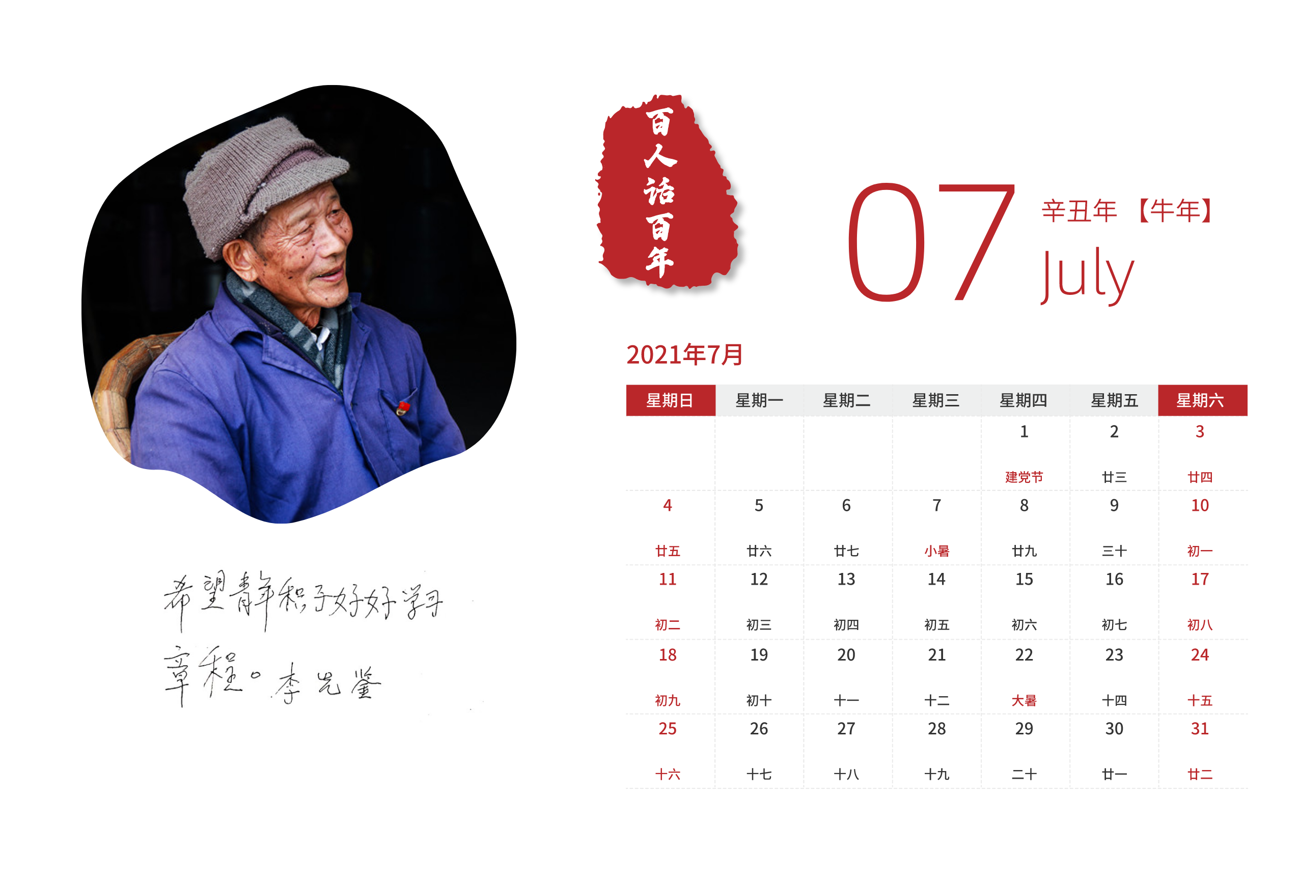 “百人话百年”月历样图