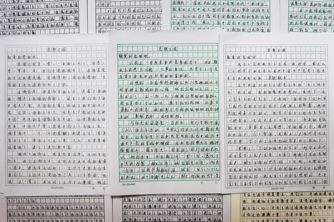 “九仟”采风团成员们将自己的访谈体会写入思想汇报中 “在百年未有之大变局的今天,我们更应多参与‘百人话百年’这样的红色活动,从老党员们的红色故事中汲取养分,加强自己的党性修养。”当刘亚歌将自己听完宣讲会的感悟分享给入党积极分子培训班的其他同学时,同为入党发展对象的19计算机1班徐海智当场表示也要成为“九仟”青年,和大家一起踏上“百人话百年”采风之旅。