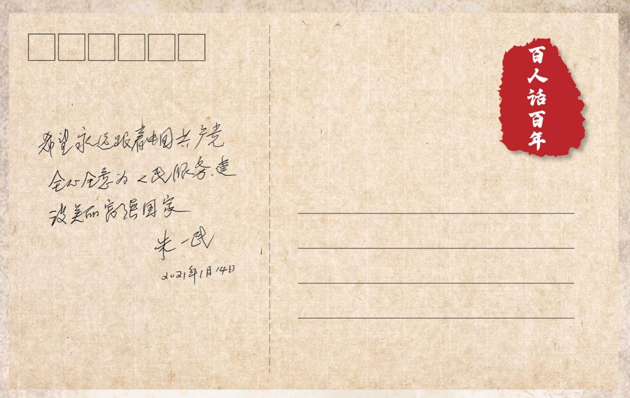 “百人话百年”明信片反面样图 为了擦亮更多蒙尘的红色记忆,传承老党员们更多的红色基因。接下来,九仟采风团还将设计印有老党员照片和手写寄语的“百人话百年”专属月历和明信片,让广大青年从访谈中获得的红色感悟更加写实,让老党员们的红色故事更加触手可及。同时,“九仟”青年们还将组织“红色故事会”,邀请自己采访到的老党员们返校,面对面近距离地与更多青年学子现场交流,讲述自己的红色故事。让党的伟大精神在九仟采风中,薪火相传,生生不息。 |
