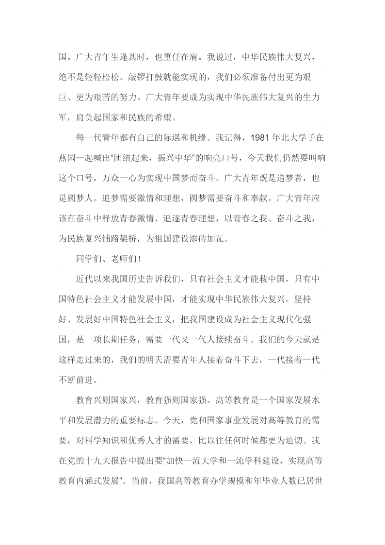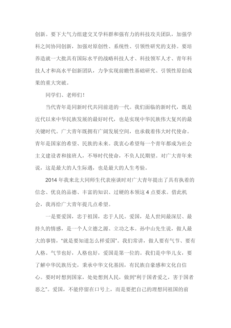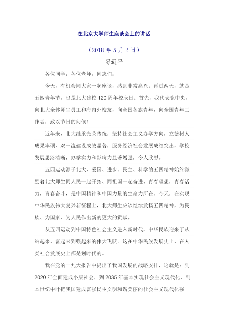 2018年5月2日在北京大学师生座谈会上的讲话
