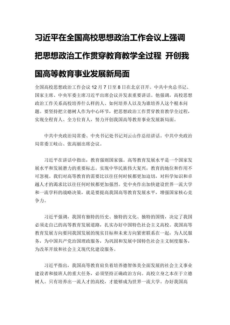 2018年12月7日在全国高校思想政治工作会议上讲话