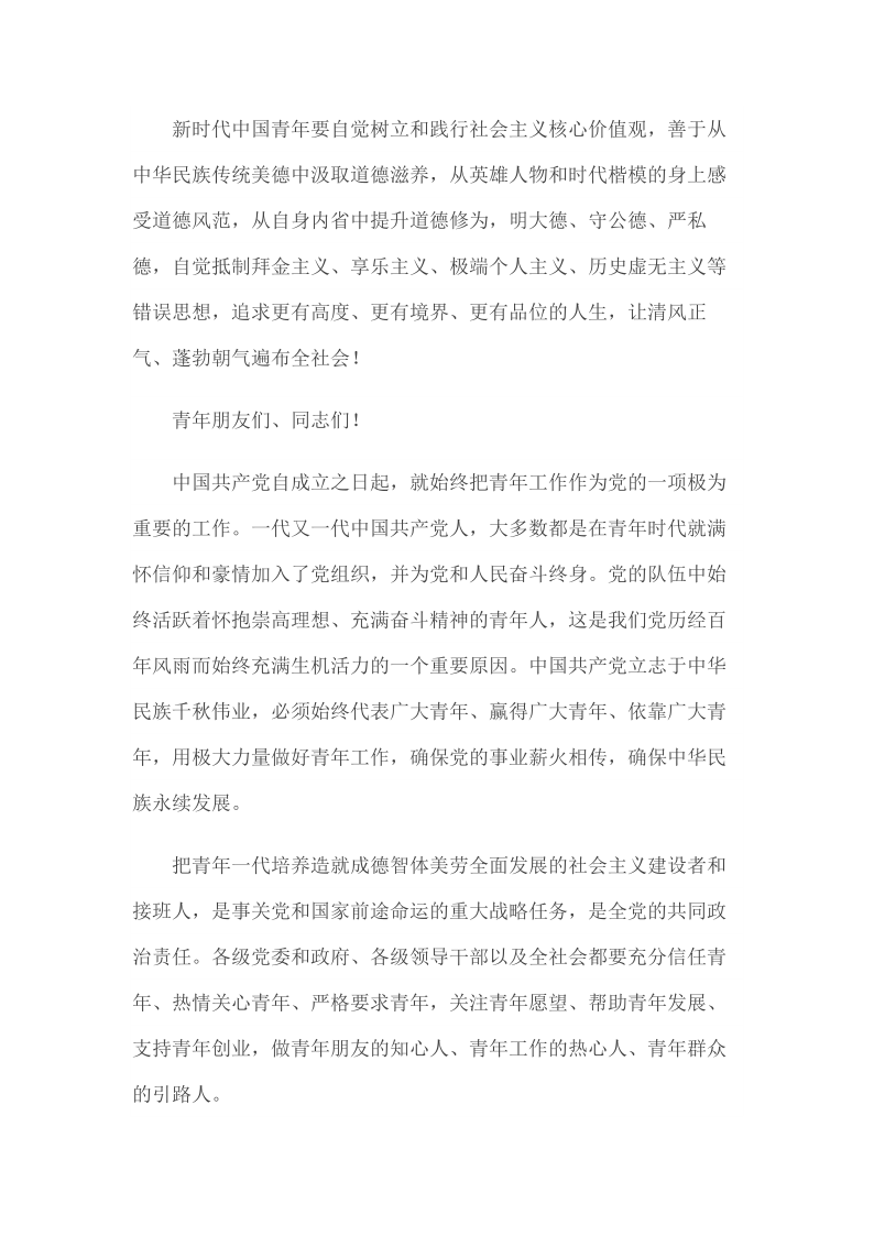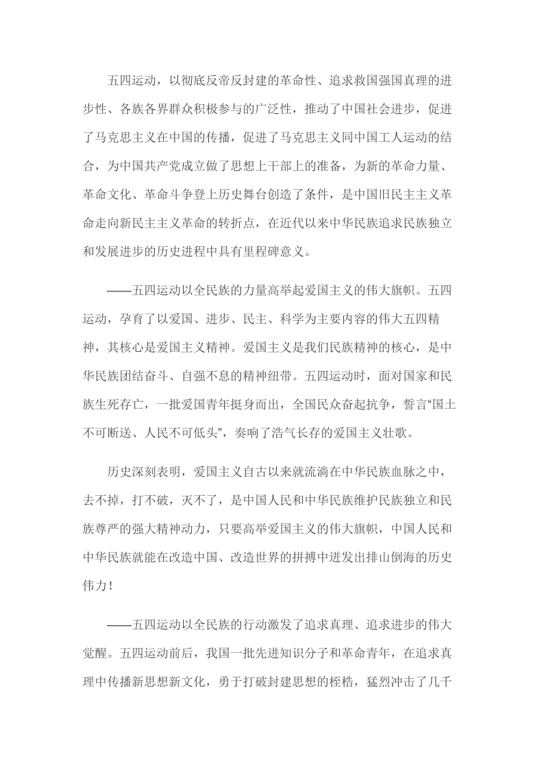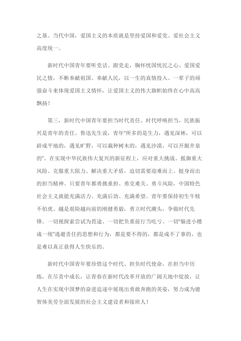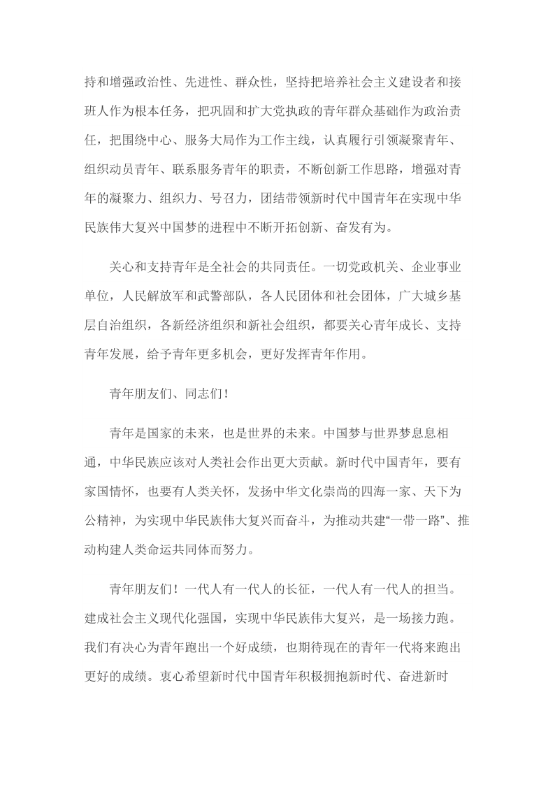 2019年4月30日在纪念五四运动100周年大会上的讲话