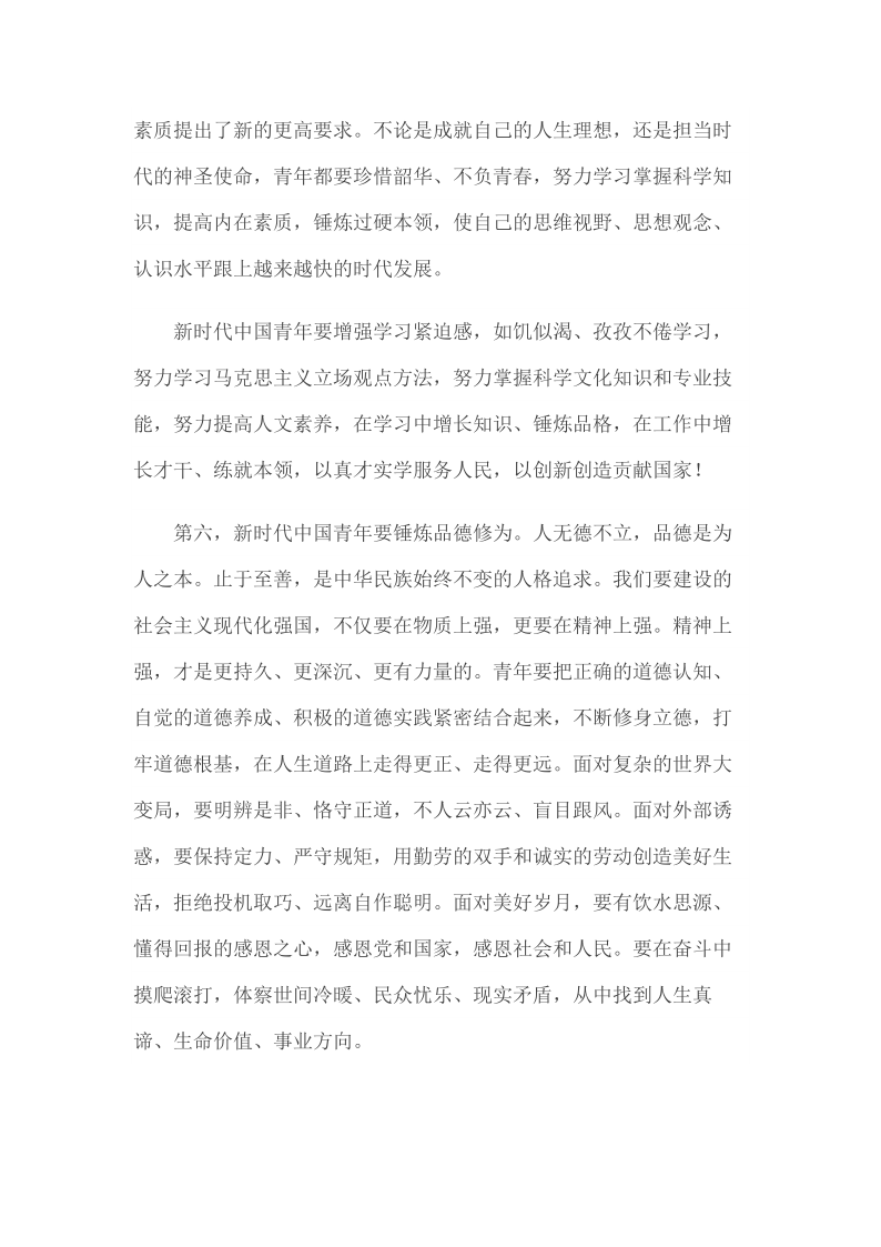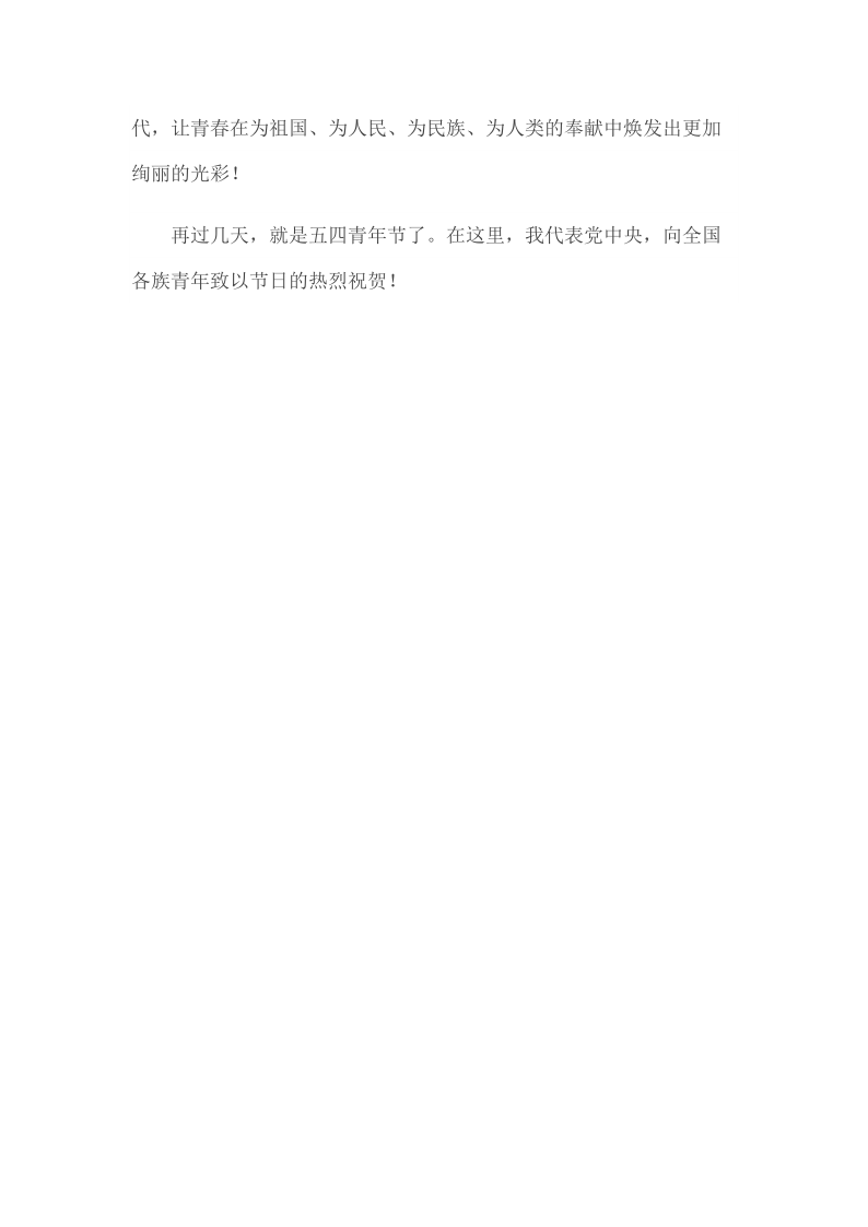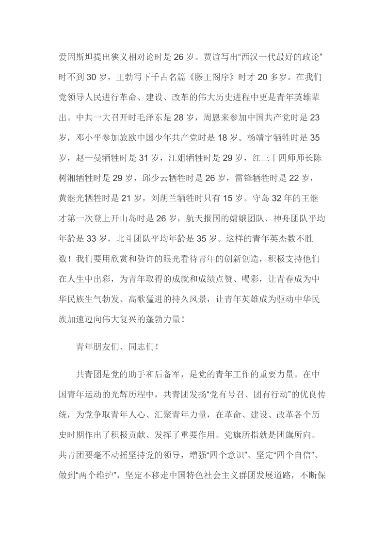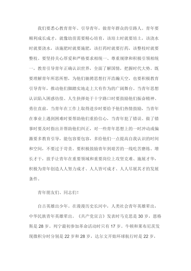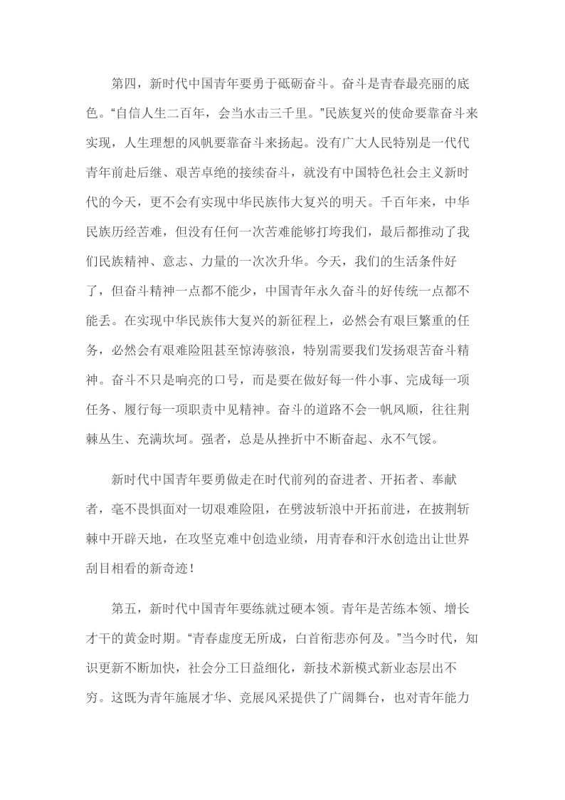 2019年4月30日在纪念五四运动100周年大会上的讲话