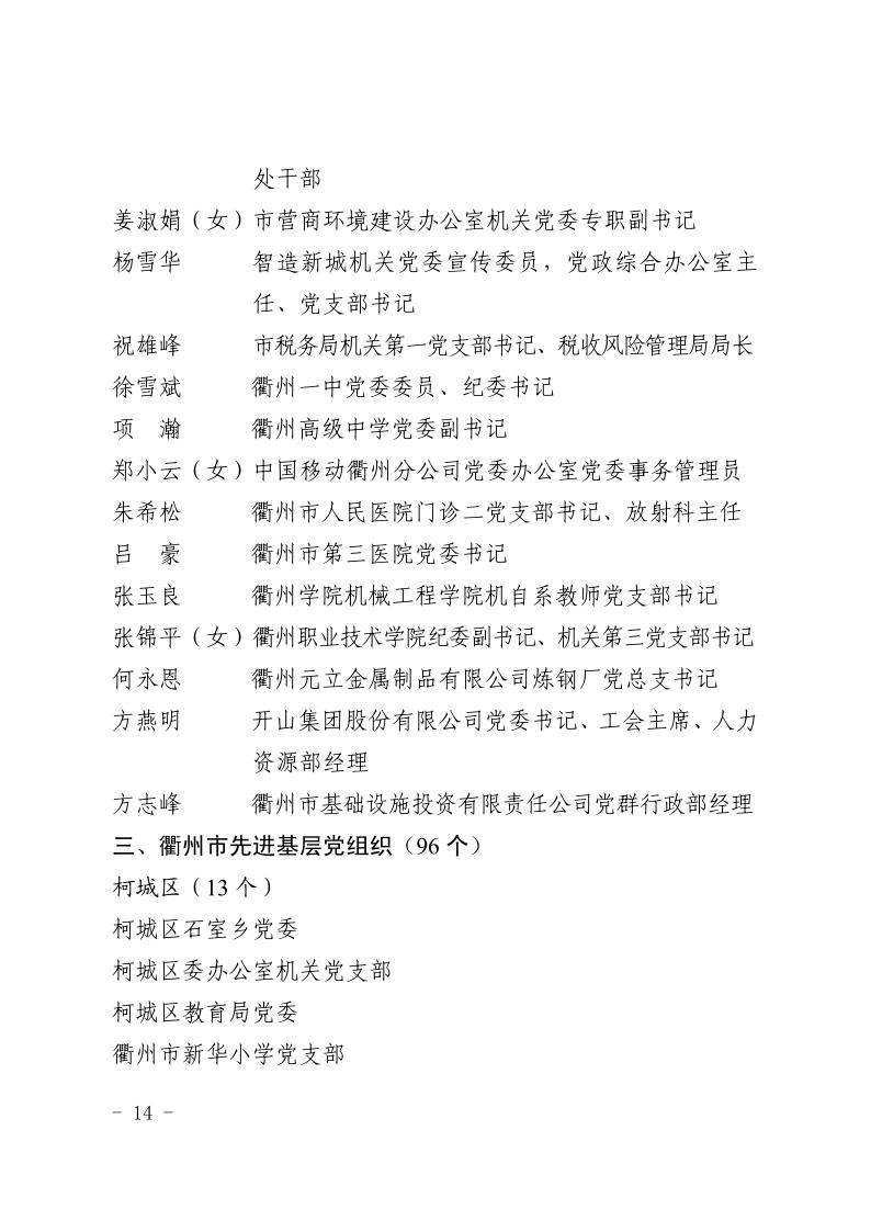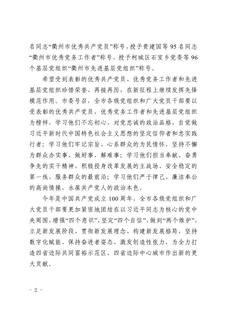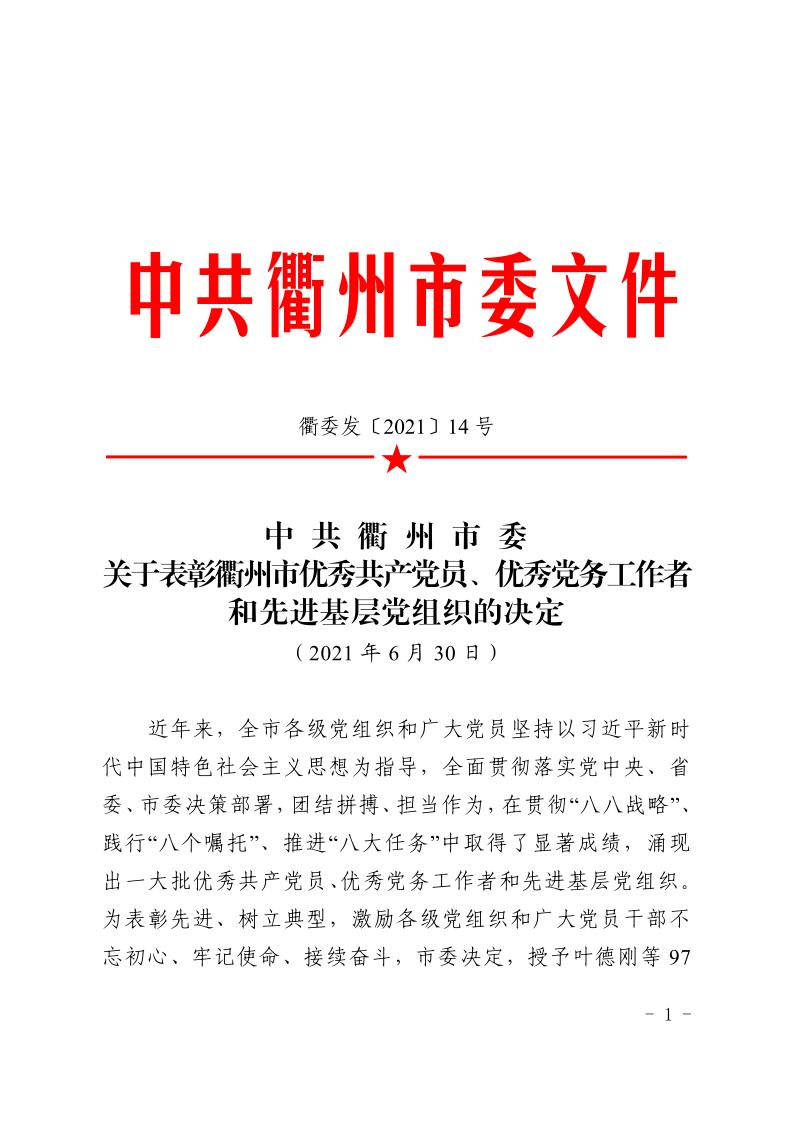 计算机应用技术党支部获衢州市先进基层党组织衢委发[2021]14号关于表彰衢州市优秀共产党员、优秀党务工作者和先进基层党组织的决定(文件)