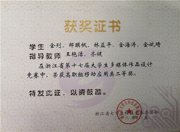 浙江省第十七届大学生多媒体作品设计竞赛高职组移动应用类二等奖