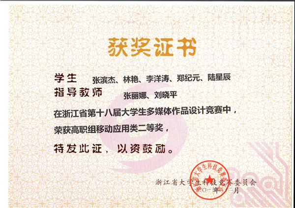 浙江省第十八届大学生多媒体作品设计竞赛高职组移动应用类二等奖