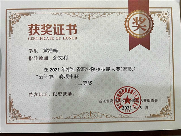 浙江省职业院校技能大赛(高职)“云计算”赛项二等奖
