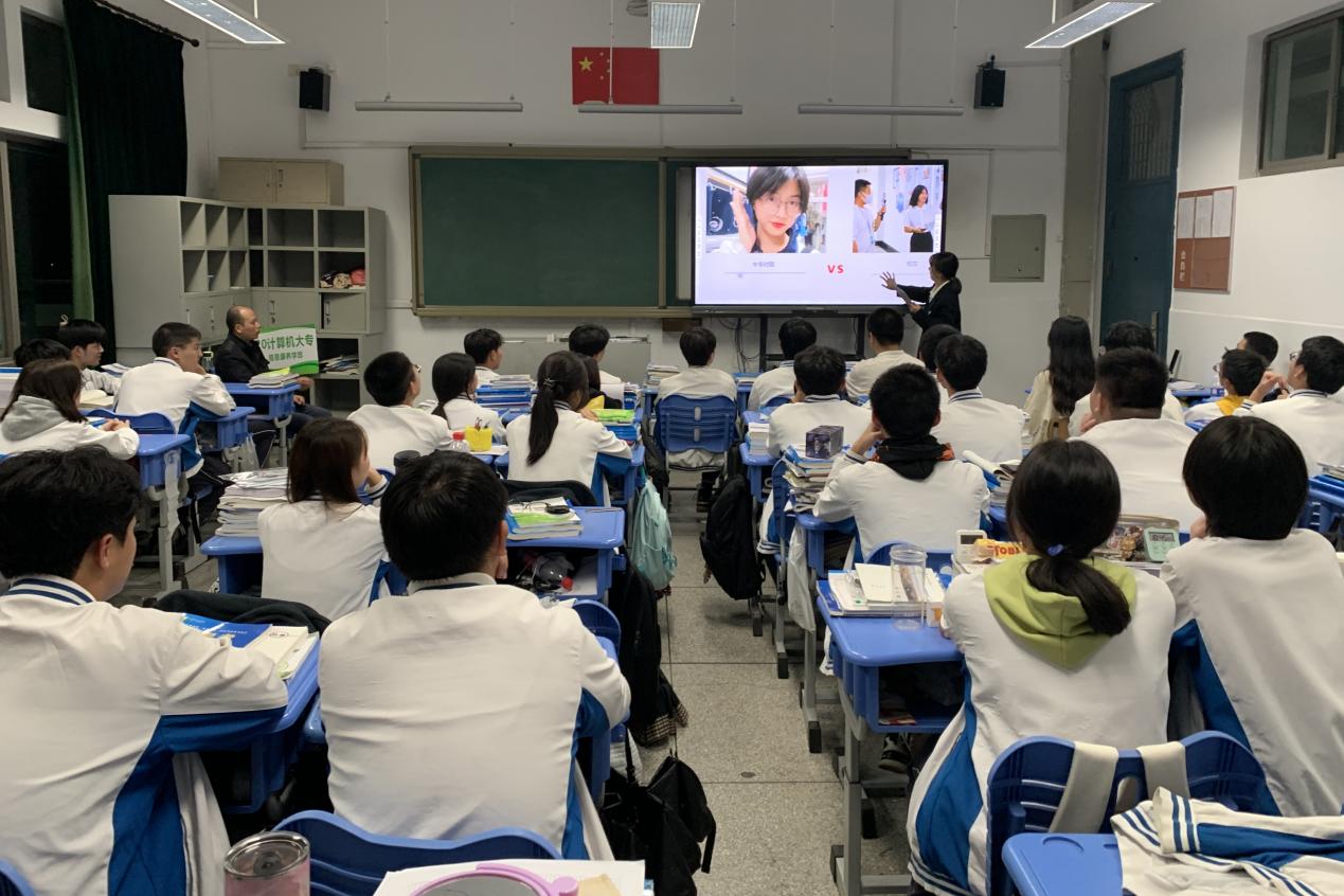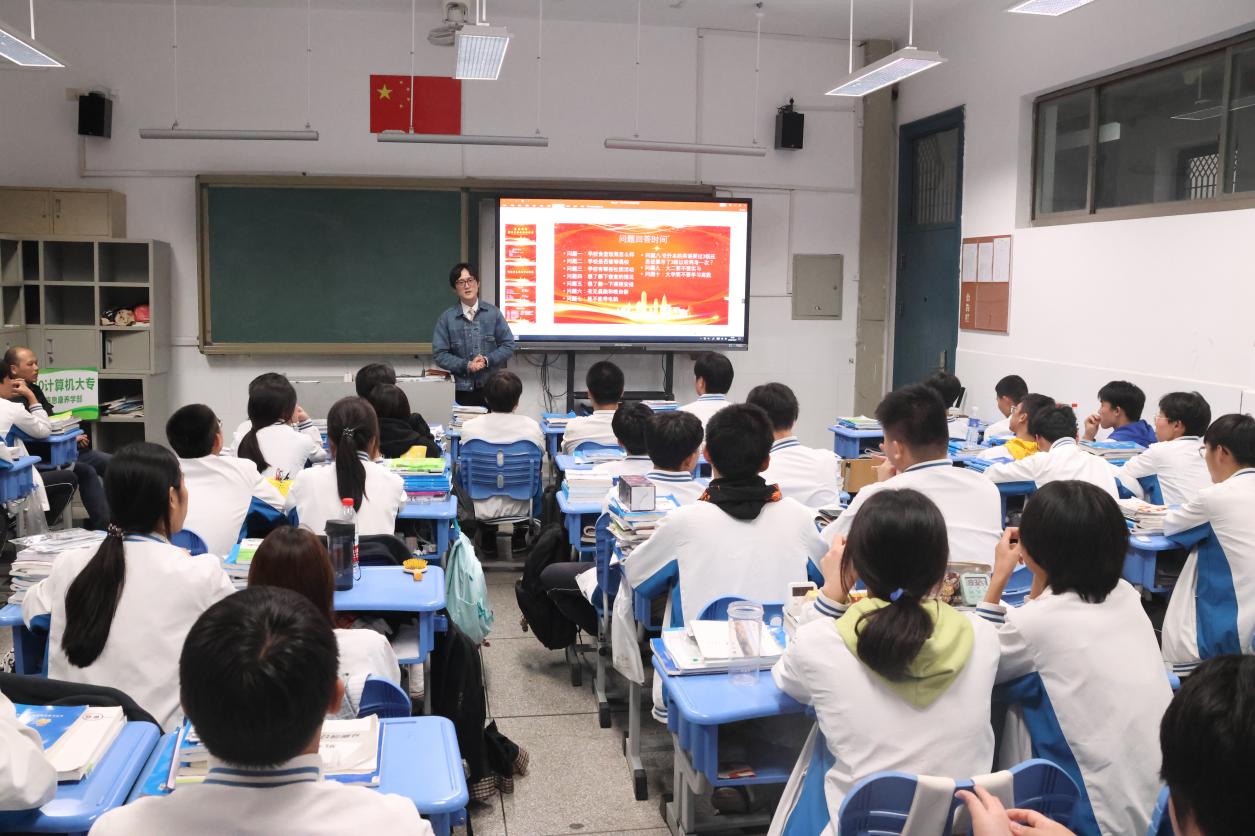 “我们大学要上哪些课?”“专升本对英语等级有要求吗?”“学校有哪些社团?”……课堂上,中专学子边听边问,气氛热烈。感受到同学们对大学校园的渴望,骆黎阳老师根据校情院情,结合实际学生工作中的生动案例,深入浅出地对同学们的提问进行认真详细的解答,并结合他们就读的计算机专业现场指导大家进行职业生涯规划,希望同学们珍惜时光,不负韶华。