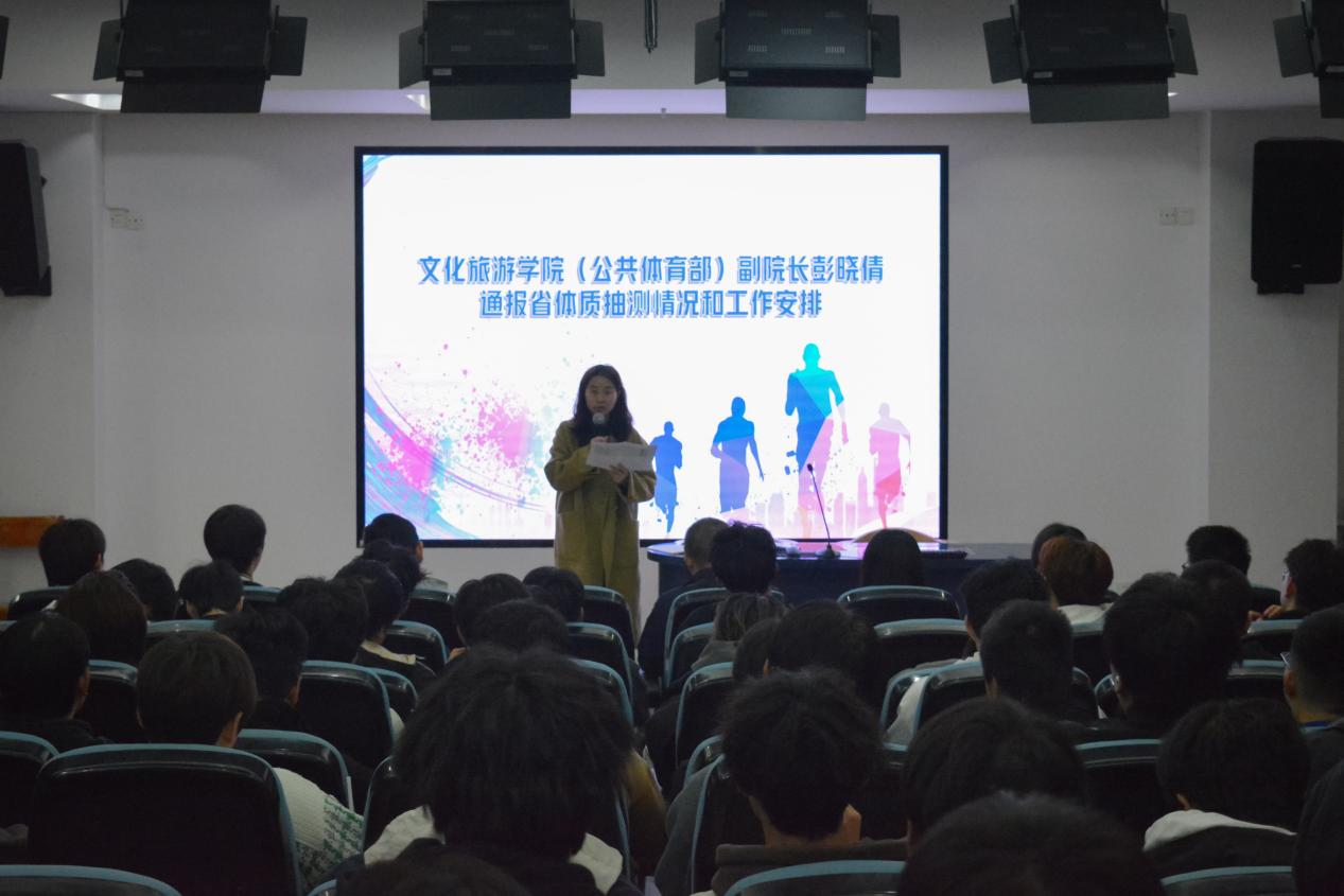 为积极响应省体质抽测工作安排,贯彻落实学校相关部署要求,激励学生提高各项身体素质,4月7日中午,我院在学校2号报告厅召开浙江省体质抽测学生动员大会,院党总支书记廖建平出席并讲话,院党总支副书记谷明慧主持会议,文化旅游学院(公共体育部)副院长彭晓倩出席,我院参与省测班级班主任及全体学生参加会议。