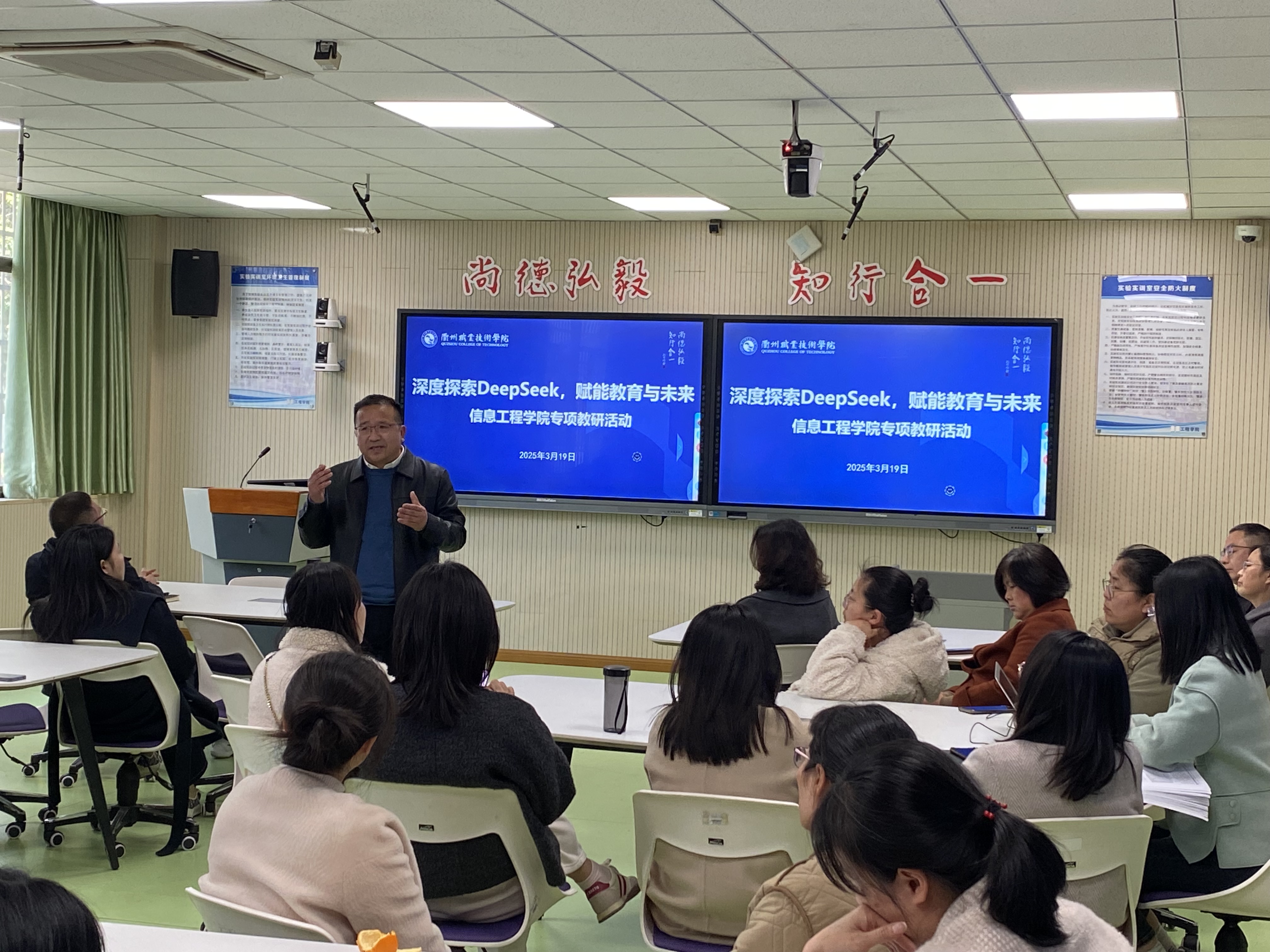 信息工程学院于3月19日下午在理工南楼107举办“深度探索DeepSeek,赋能教育与未来”专项教研活动。活动由副院长李杰主持,学院领导及教师积极参与,共同探讨了人工智能技术在教育领域的创新应用。