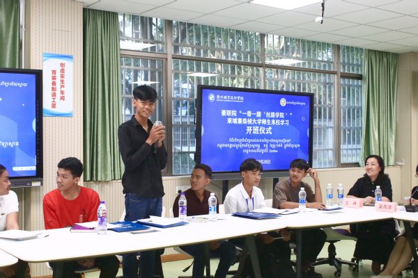 在留学生自我介绍环节,柬埔寨同学们用真诚的语言表达了对知识的渴望、对中国文化的好奇,展现了青春的朝气与活力,赢得了在场师生的阵阵掌声。