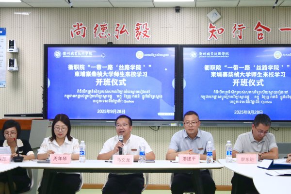 仪式上,马文龙院长发表致辞。他详细介绍了学院的教学资源、培养目标以及对留学生们的殷切期望,鼓励同学们珍惜学习机会,努力提升专业能力,成为中柬友好交流的使者。