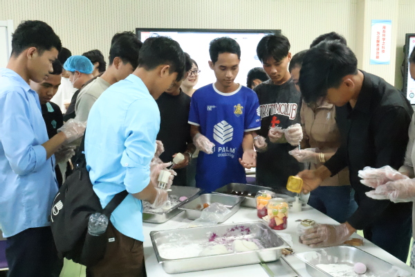 皓月当空,秋风送爽。在中华民族传统佳节——中秋节即将到来之际,为弘扬中华优秀传统文化,营造温馨和谐的校园氛围 ,并切实将对学生的关⼼关爱落到实处,9月29日我院电气自动化技术专业党支部精⼼组织了一场别开生面的“一轮明月映中外,两域情深共此时”主题党日活动。活动特别邀请了首次来华的柬埔寨留学生及部分省内外学生代表共同参与,学院党总支书记廖建平、党总支副书记谷明慧、电气自动化技术专业课教师与同学们欢聚一堂,共度佳节。 活动伊始,来自23电气1班的金子熙同学以一支爵士舞拉开了晚会的序幕,瞬间将现场气氛点燃,赢得了在场师生的阵阵掌声。为使同学们更深入地理解中秋节的文化内涵,电气支部党员老师担任了本次活动的文化讲师,通过图文并茂的PPT,系统介绍了中秋节的起源、习俗以及其在中国文化中象征“团圆”与“和谐”的核⼼价值。柬埔寨留学生们听得聚精会神,不时通过翻译与老师互动,对这个充满诗意的东方节日表现出浓厚的兴趣。 讲解完毕,活动进入了最受期待的互动环节——“制作冰皮月饼”。党支部成员和志愿者们早已将准备好的冰皮粉、豆沙、莲蓉等馅料以及各式精美的模具分发到各个⼩组。在食堂工作人员亲身示范和耐心指导下,同学们纷纷动手尝试。从揉面、分馅到压模成型,每一个步骤都充满了探索的乐趣。中外学生们并肩协作,互相交流制作心得,现场欢声笑语不断。 为了进一步增进中外学生的交流与融合,活动还设置了“趣味猜灯谜”和“团队协作”等游戏环节。在团队游戏中,语言的障碍被灿烂的笑容和默契的肢体动作所打破,在轻松愉快的氛围中迅速拉近了彼此的距离,建立了深厚的友谊。 学院领导在活动中与同学们亲切交谈,详细询问了留学生和省内外学生的学习与生活情况。本次中秋主题党日活动不仅让首次来华的柬埔寨留学生和远离家乡的省内外学子感受到了节日的温暖和学院大家庭的关爱,更通过寓教于乐的形式,搭建了一个中外文化交流互鉴的平台,既是一次成功的文化传播,也是一次深刻的爱国爱校教育。 (信息工程学院 郑茂林) |