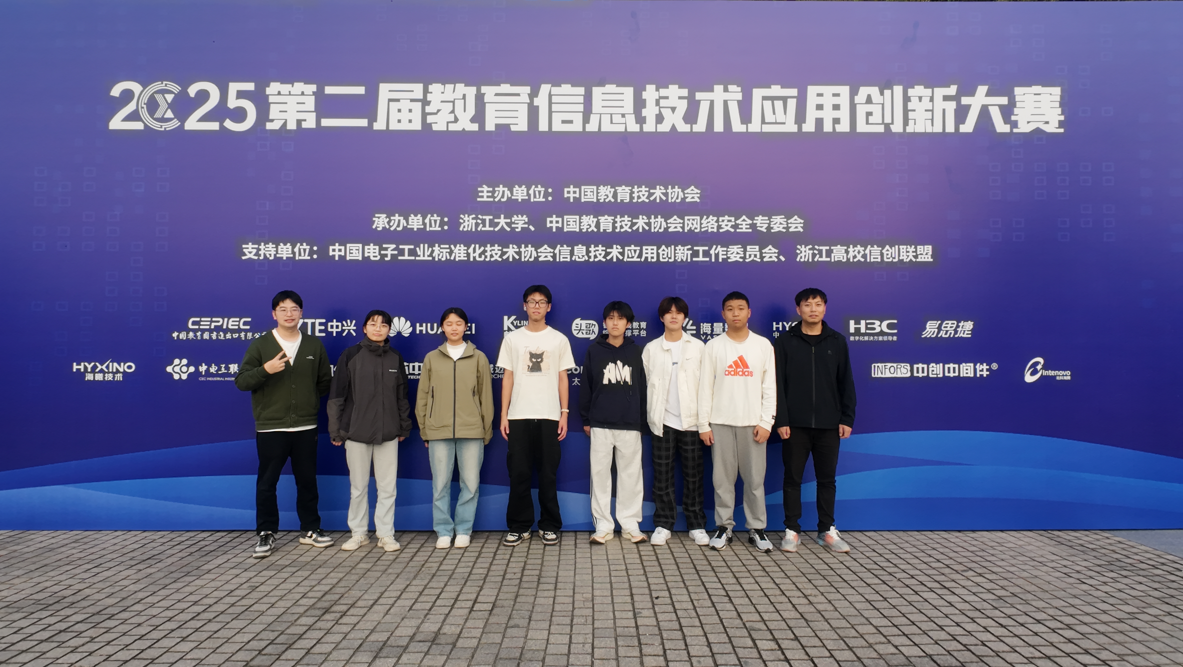 2025年11月15日,“2025年第二届教育信息技术应用创新大赛“全国总决赛在浙江大学顺利举行。我校学生凭借过硬的实操能力与稳定的临场发挥,从包括北京大学、复旦大学、东北师范大学、兰州大学、北京邮电大学、深圳职业技术大学等众多本科院校在内的决赛队伍中脱颖而出,在与本科院校同规则、同标准排名的情况下,荣获一等奖1项、二等奖1项、三等奖1项。我校信息工程学院24级人工智能技术应用专业的学生团队(方堃、庄启创)和23级人工智能技术应用专业的学生团队(夏家胜、安文欣)在安洪旭、庄千洋老师的悉心指导下分别获得目标智能检测技术应用实践赛赛道全国一等奖、二等奖的好成绩;信息工程学院23级计算机应用技术专业的学生团队(力祥、来煜圻)在李春茂老师的悉心指导下获得应用软件适配迁移赛赛道全国三等奖的好成绩。