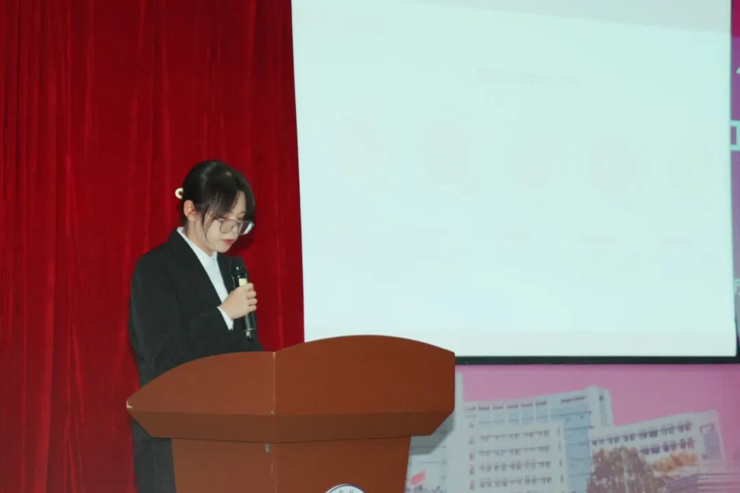 我院第十七届学生会主席团成员顾雯珺向大会作工作报告,她对我院学生会一年来开展的主要工作总结如下:一、坚持政治引领,筑牢紧跟党走的思想根基;二、完善组织建设,落实桥梁纽带的职责使命;三、强化人才培养,打造争先创优的骨干队伍;四、聚力团学活动,营造青春活力的浓厚氛围;五、服务中心大局,扛起接续奋斗的责任担当。