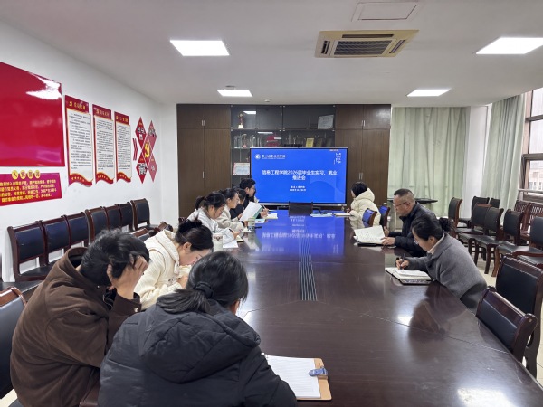 为进一步做好2026届毕业生就业工作,12月24日上午,信息工程学院在724会议室召开就业工作推进会,学院党总支书记廖建平,党总支副书记谷明慧和就业辅导员以及毕业班班主任参加了会议。